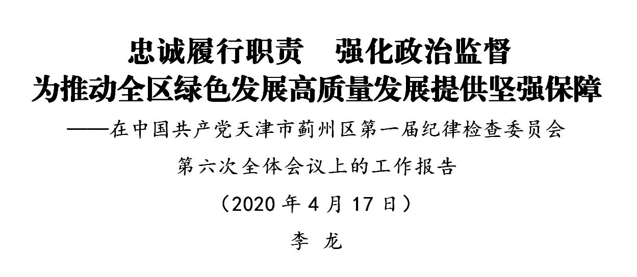 我代表中共天津市蓟州区第一届纪律检查委员会常务委员会向第六次全体会议作工作报告,请予审议。