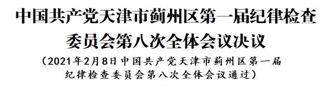 中国共产党天津市蓟州区第一届纪律检查委员会第八次全体会议,于2021年2月8日召开。出席这次全会的有区纪委委员19人,列席74人。